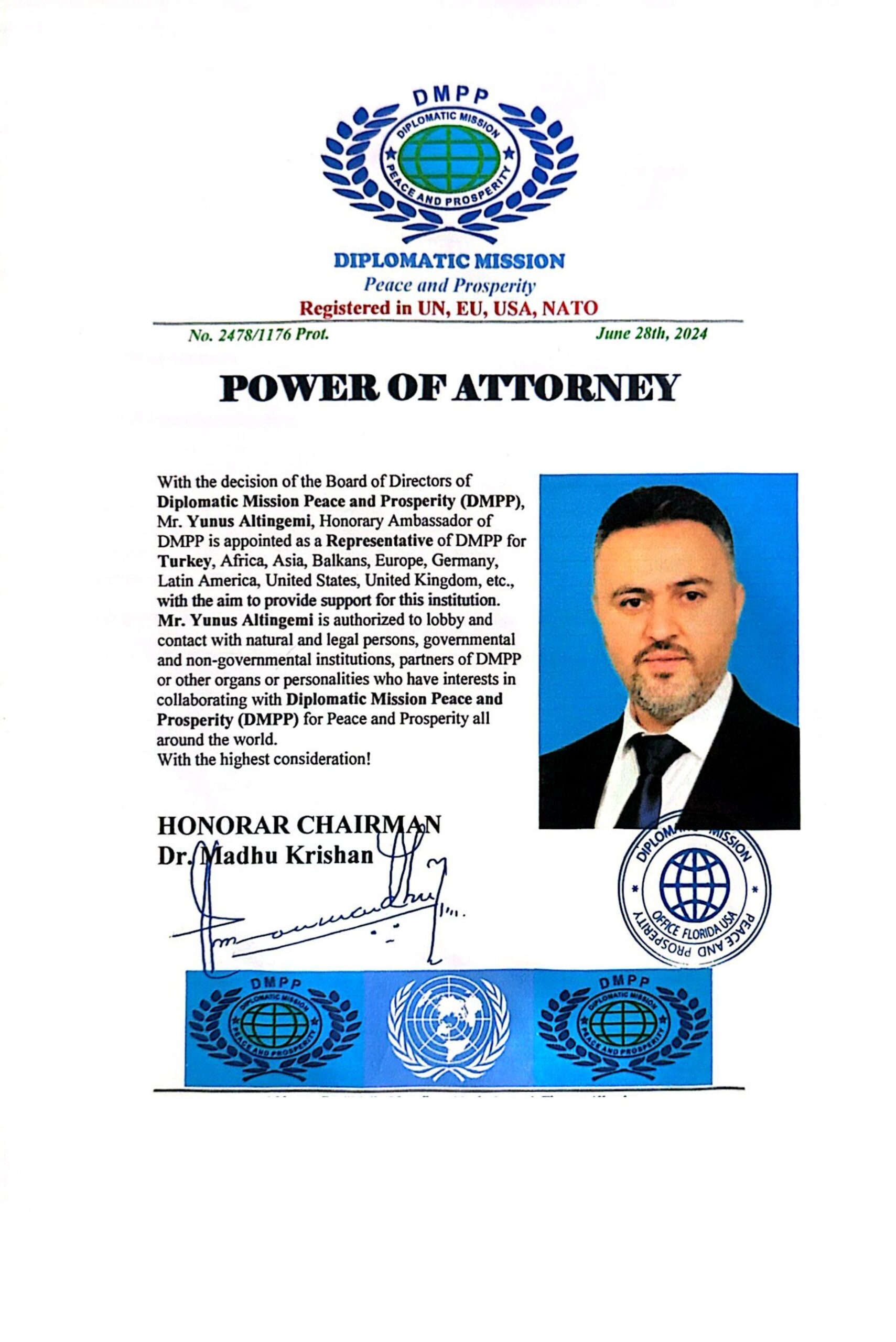 Av. Gabriela Shehati, Diplomatic Mission Paeace and Prosperity (DMPP) Hukuk Danışmanı ve Diplomatic Mission Peace and Prosperity (DMPP) Fahri Büyükelçisi, DMPP Türkiye Temsilcisi Sayın Yunus Altıngemi.
